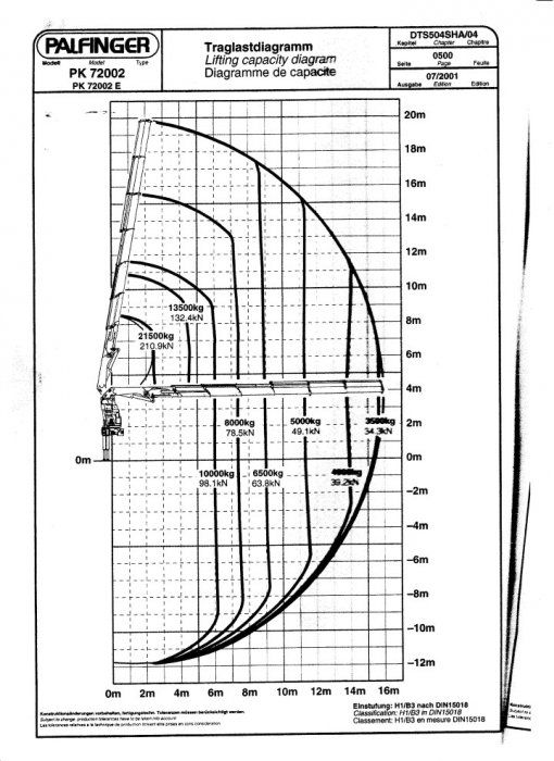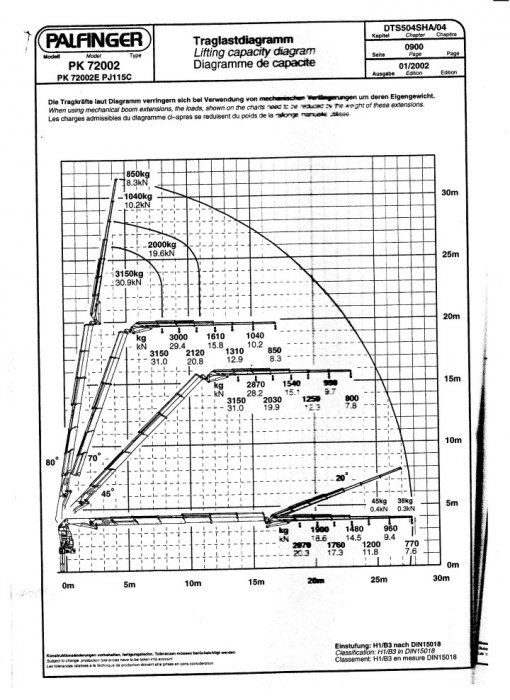 Laitteistomme nostokapasiteetti vaihtelee tarvittavan nostokorkeuden mukaan. Käytännössä pystymme suorittamaan minkä tahansa tavaran noston, johon kapasiteetti riittää. Vieressä olevat kaaviot antavat osviittaa käytössä olevasta nostokapasiteetista.